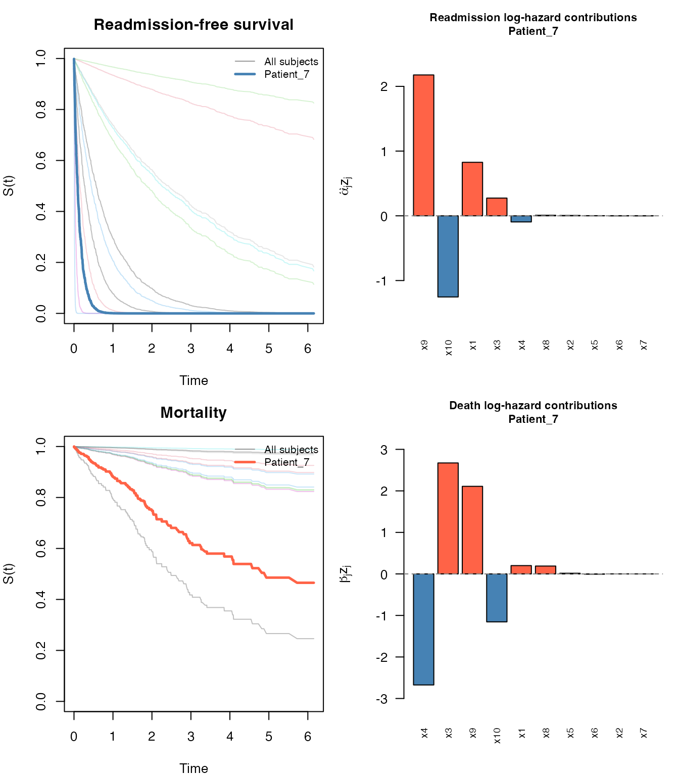 (readmission) and a terminal event (death). Death precludes