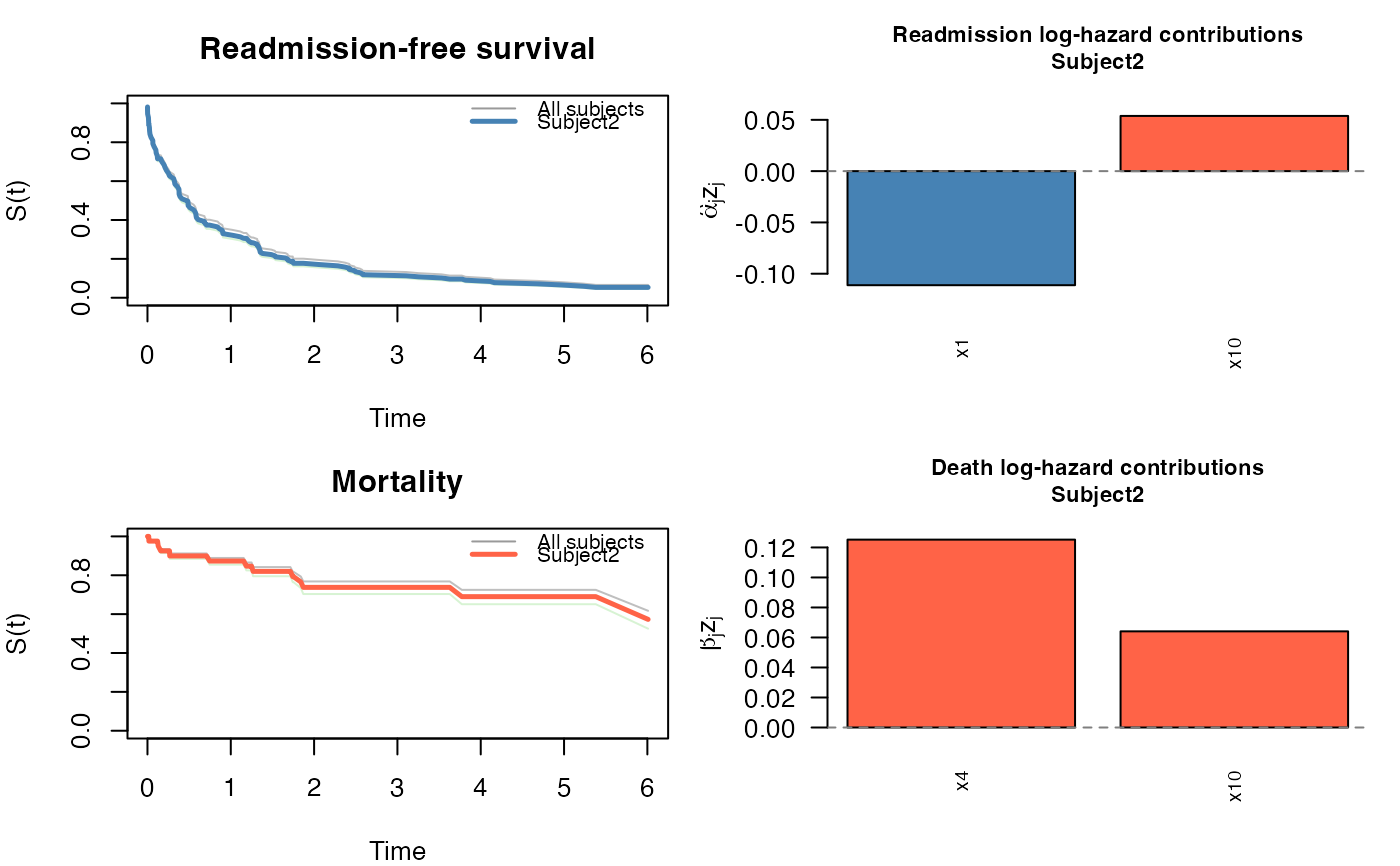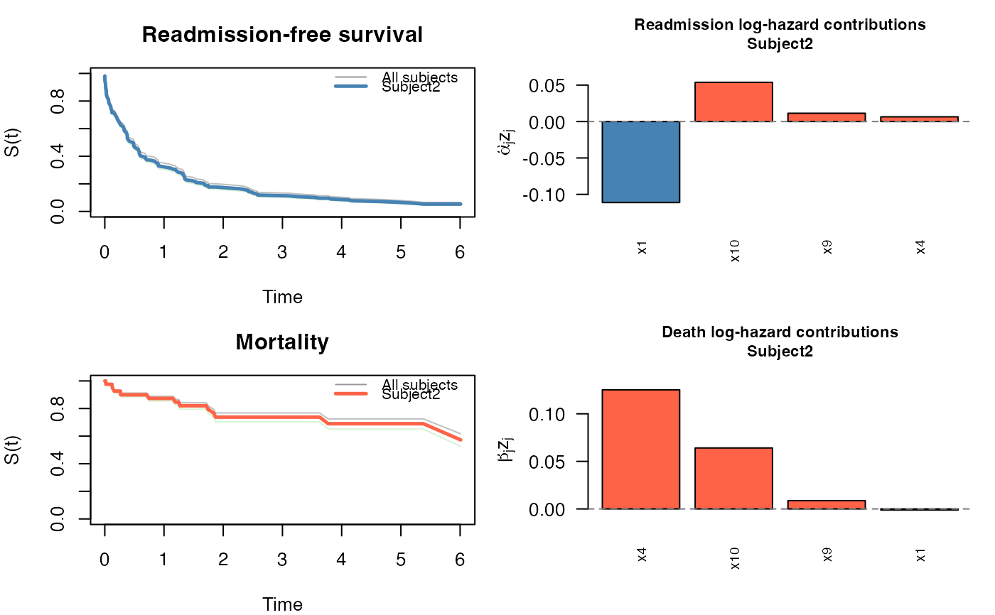 Readmission-free survival curves for all subjects, with the selected subject highlighted.